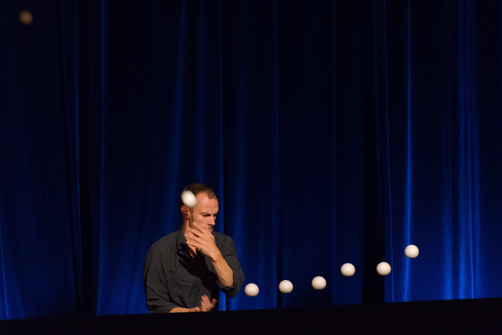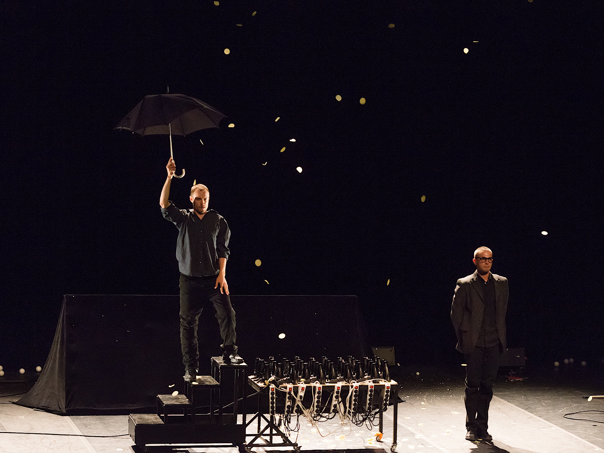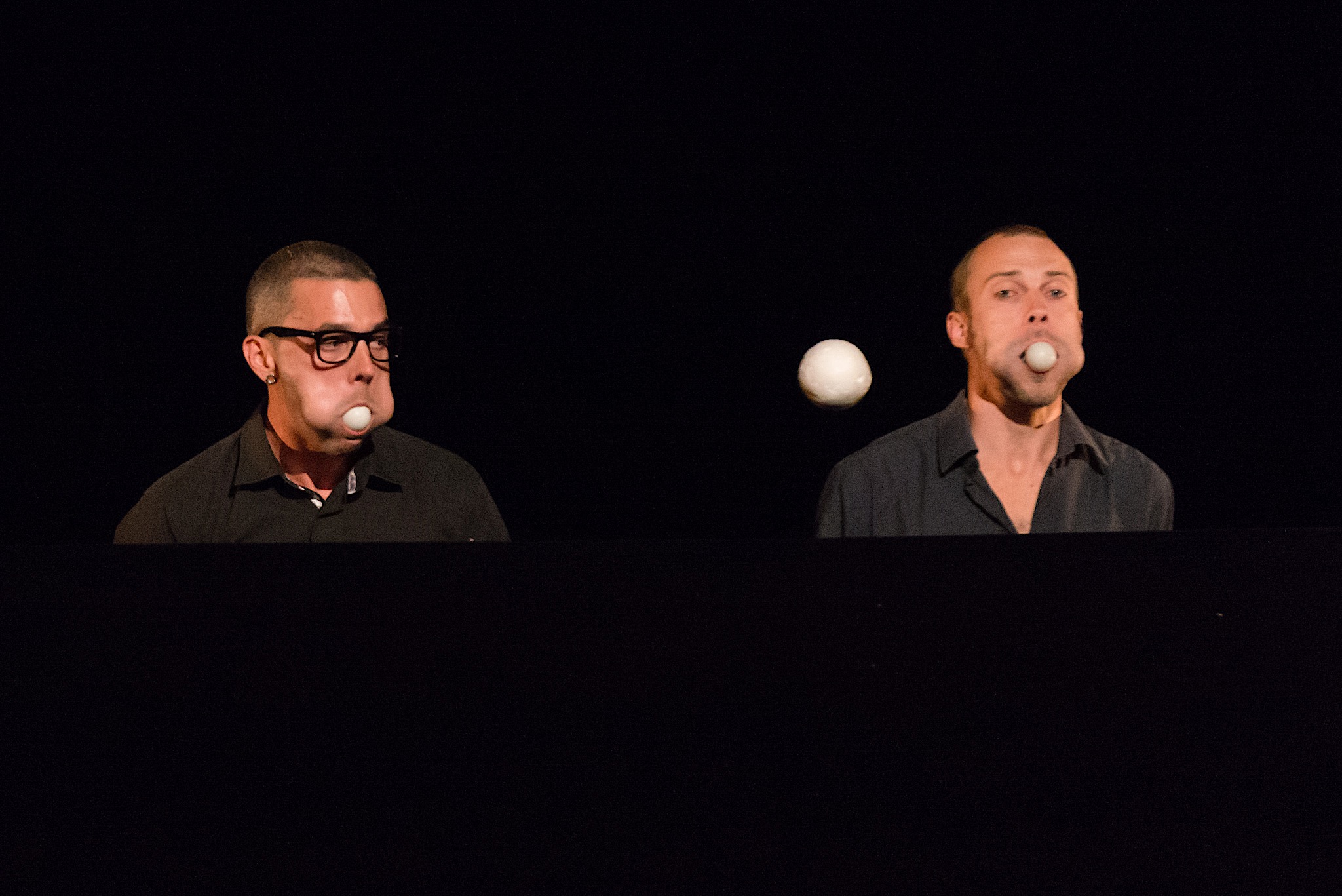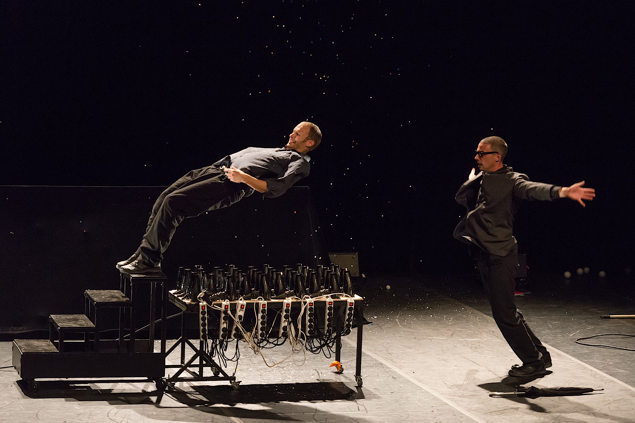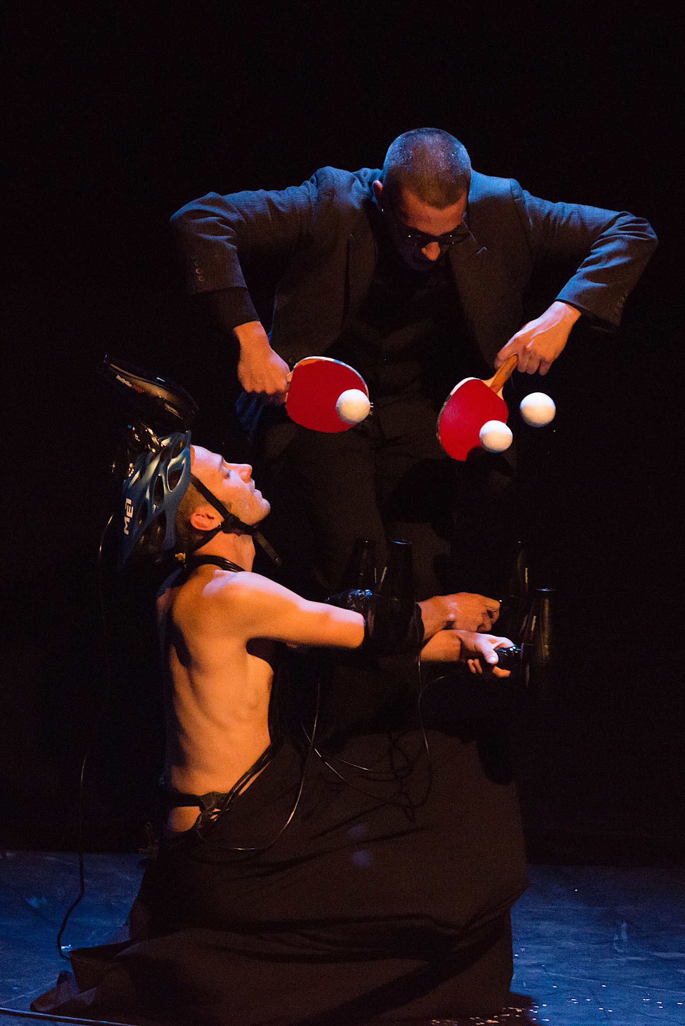 Le duo de clown-manipulateur d’objets ont créé un spectacle très drôle et différent des autres spectacles de clown. En jouant avec la gravité et leurs (nombreux) sèche-cheveux, ils développent des numéros à la fois comique et qui piquent la curiosité.